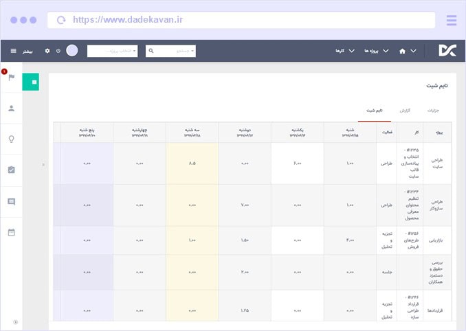 بخش پیگیری زمان از نرم افزار مدیریت پروژه آنلاین سمین به شما این امکان را میدهد که زمان برآوردی و ثبت زمان را برای هریک از پروژه ها و کارها دنبال کنید. این قابلیت، امکان تأثیرگذاری بر پیشرفت پروژه، حقوق و دستمزد تیم پروژه یا سازمان و سنجش عملکرد افراد را دارد.